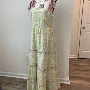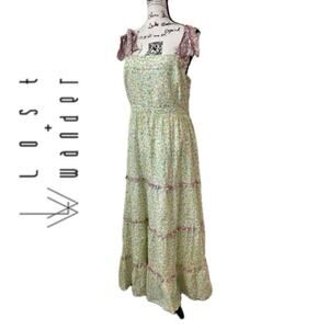 LOST & WANDER MAXI DRESS FLORAL RUFFLES TIERED SZ M BOHO COTTAGECORE