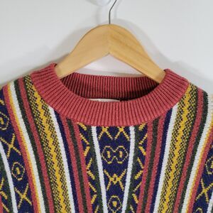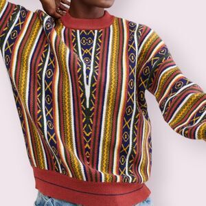 alternative retro dad sweater vintage inspired 90s 80s geometric patterned hipster primary colors