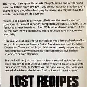 This book will especially focus on teaching you a large collection of lost recipes from pioneers, farmers, Native Americans and from the Great Depression. These are simple yet delicious and hearty recipes you can make practically anywhere and do not require high-tech kitchen equipment or even electricity.