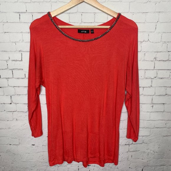 This is a LOT of (2) Women's Shirts from Apt. 9. Both have beaded detail around the neckline, are a size small, and fit true to size.