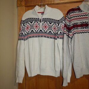 Up for purchase is a lot of two men's size large IZOD Fair Isle ski cable knit holiday sweaters. Includes the following: