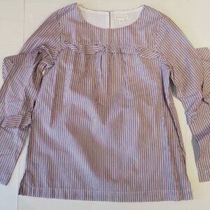 EUC - Long sleeve striped navy blue with white. White ruffle trim. Size 14