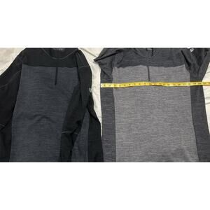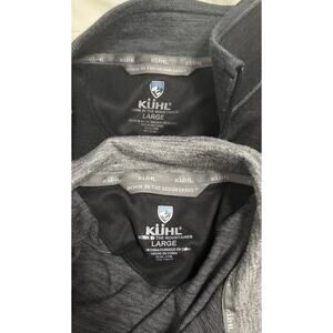 The product is a lot of two large Kuhl Ryzer 1/4 zip pullovers in solid multicolor polyester material. These activewear tops feature a mock neck, long sleeves, and a 1/4 zip style, making them suitable for outdoor activities like hiking. With a regular fit and machine washable fabric, these pullovers offer comfort and convenience for men looking for casual yet functional clothing options.