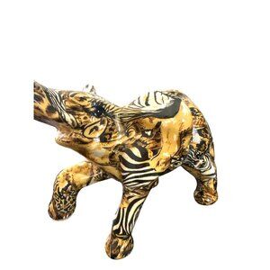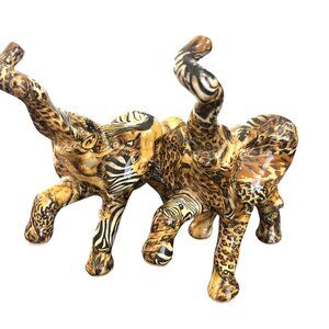 LOT OF 2 La Vie Trunk Up Elephant Ceramic Figurine Safari Animal Print Porcelain