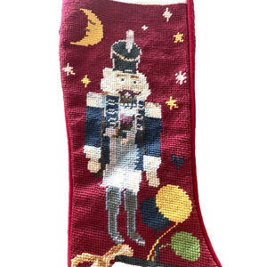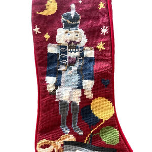 LOT OF 2 Needlepoint Embroidered Christmas Stocking Nutcracker Toy Soldier Wool