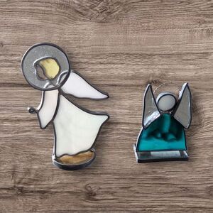 LOT OF 2 VINTAGE STAINED GLASS ANGELS ~ SUNCATCHERS