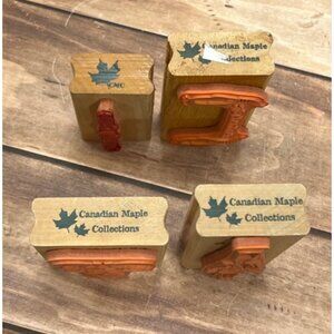 LOT OF 4 CANADIAN MAPLE HOLIDAY THEMED WOOD MOUNTED RUBBER STAMPS PENGUIN ELF