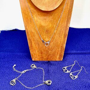 This beautiful mixed lot of jewelry is a must-have for any fashion-forward individual. Handmade in the USA, this set includes a cuff link necklace, earrings, and an anklet, all crafted with care and attention to detail. The pieces are made from high-quality metal alloy with a silver plating, and feature a stunning sterling chain. In addition to its impeccable craftsmanship, this mixed lot is perfect for anyone who loves to accessorize with unique and trendy pieces. The set includes 4 pieces in total, with each item designed to complement any outfit and showcase your individual style. Don't miss out on the opportunity to add this beautiful mixed lot to your collection today!