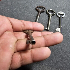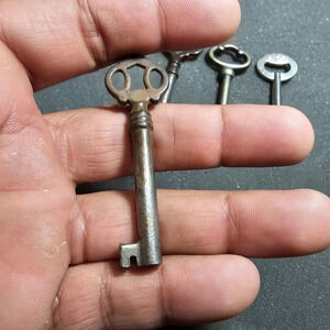 LOT OF 4 VINTAGE OPEN BARREL SKELETON KEYS BOW FANCY ORNATE ANTIQUE Collectible 3 open barrel 1 solid see pictures for reference
