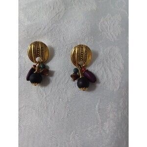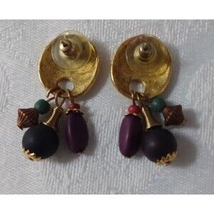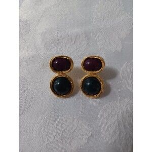 * Plum/green stones set in gold tone ovals/circles - 1 1/2"