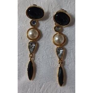 * Black, rhinestone, faux pearl dangling earrings - 2 1/2"