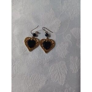 * Plum, black, jade stones hanging from gold tone oval earrings - 1 1/2"