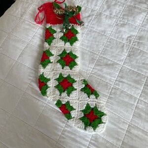 LOT OF VINTAGE 4 GRANNY CROCHET CHRISTMAS STOCKINGS