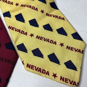 LOT Of 2 Vintage Harman Red And Yellow State Of Nevada Reno Las Vegas Silk Tie