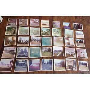 Most are matte finish, 1 glossy rectangular photo of Christmas tree. Square larger photos are 4" x 4", smaller are 3" x 3". All taken in Northern New Jersey in the 1970s, some have writing on back (Sparta NJ, Turtle Back Zoo in West Orange).