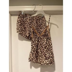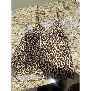 This is a lot for teen girls with two really nice tops in beautiful colors. The dark pink puff sleeve shirt is Express brand size Small, the light sheer top is Abound size medium and the animal print silk PJ set is Vince Camuto size medium. All are clean and come from a smoke free home.