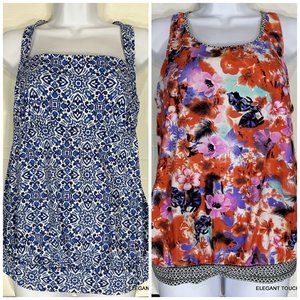 LOT of 2 Lands' End Blouson Tank Swim Top Women 12 Padded Cups Swimwear L