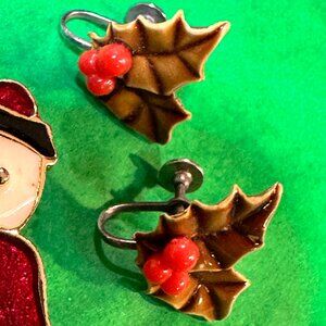 LOT of 2 Vintage Holiday Pins & 1 Earrings