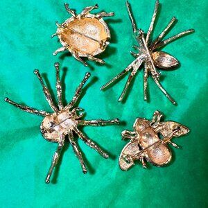 Four different insect motifs. Enameled. Three also have rhinestones.