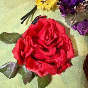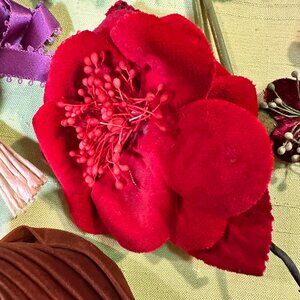 A bonanza of colorful vintage silk flower pins!