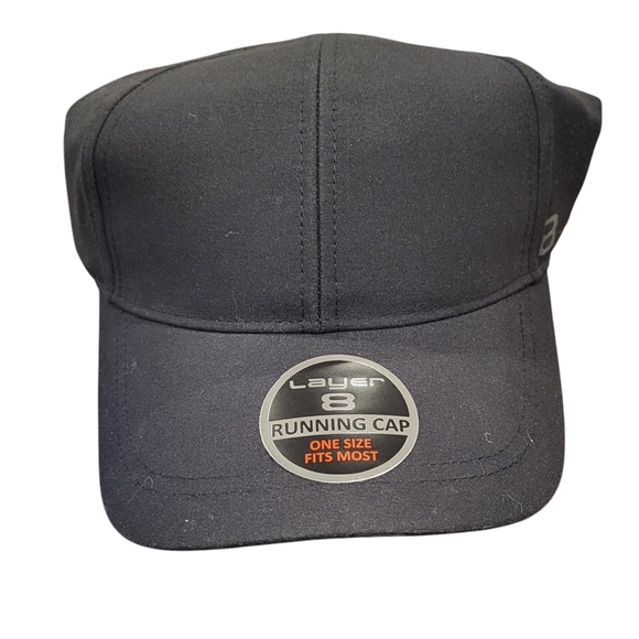 Benefits Charity! LOT of TWO! Layer 8 Black Performance Running Hat Ball Cap Adjustable Hat NEW with tags! One size fits all!