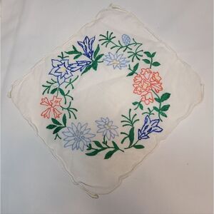 LOT OF 6, VINTAGE linens, towel, doily, Handkerchief embroidered