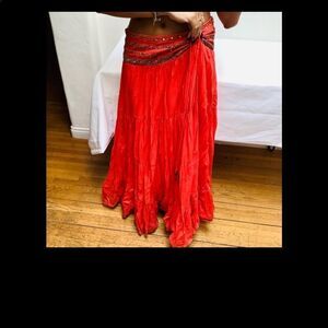 ORANGE HAND BEADED MAXI SKIRT