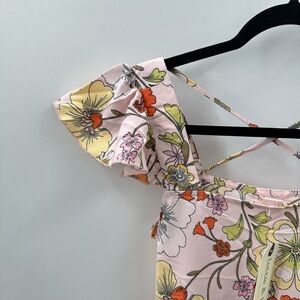 LOTTIE & HOLLIE pink floral mini tiered ruffle sleeve woman boho dress NWT XS,S