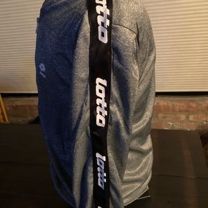 LOTTO, bomber style track suit top in heather grey. NWT, Size Large. Trim / Athletic fit