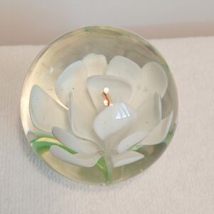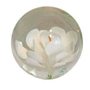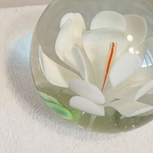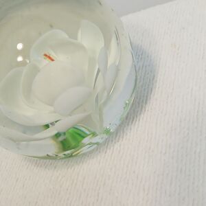 LOTUS FLOWER Glass Paperweight Hand Blown Glass White Floral