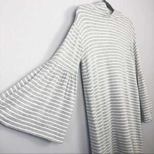 LOU & GREY | Flare Sleeve Hooded Striped Dress Gray White Women’s Size Small