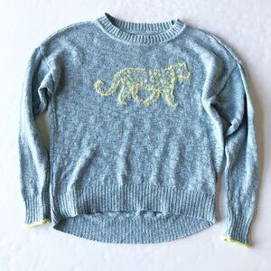 LOU & GREY Light Blue Leopard Embroidered Knit Sweater Womens XS