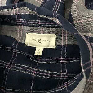 LOU & GREY WOMEN PLAIDS BUTTON FRONT BOYFRIEND SHIRT TUNIC TOP PURPLE SIZE SMALL