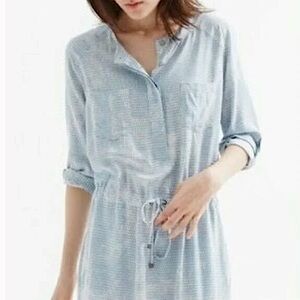 Description: Lou & Grey Triangle Tie Dye Print Tab Sleeve Drawstring Waist Mini Shirt Dress