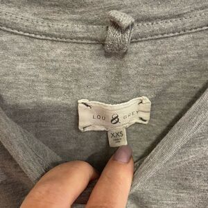 Good preowned condition: Lou & Grey T-shirt size XXS light. Nice little casual top, cute tie on side in front.