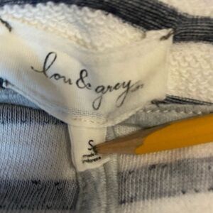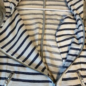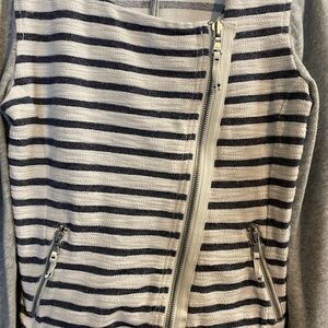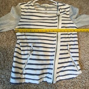 Lou and Grey Size Small Moto Style Cardigan. Gray and white Stripes and two front zip pockets