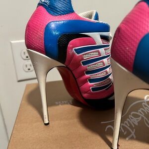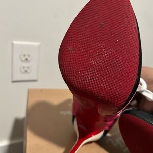 Authentic christian louboutin boltina booties size 37! Comes with box, no dust bags. Bottoms have been resoled and shoes were repainted in areas where there was scratching, but needs to be touched up! Scratches in the paint cannot be seen when worn. Send a message in a bundle before purchasing, I have a size 37.5 as well!