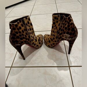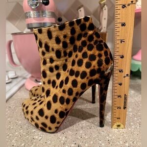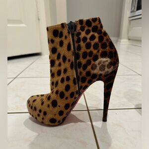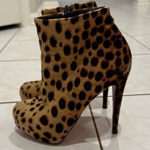 LOUBOUTIN Miss Clichy 140 Calf Hair Animal Print Zip Boots Size 37.5 (FLAWED)