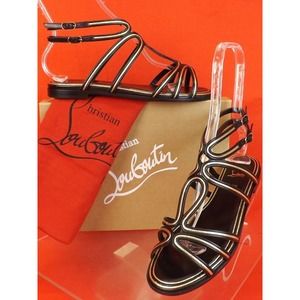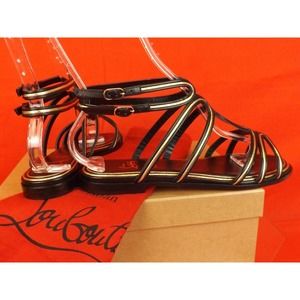 LOUBOUTIN ZENOSANDY BLACK LEATHER CAGED BUCKLES FLATS GLADIATOR SANDALS 40