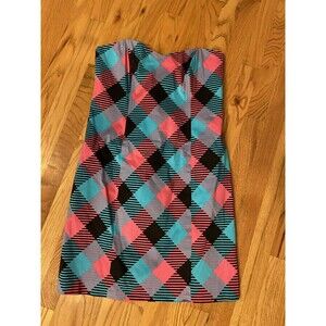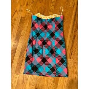 LOUDMOUTH GOLF Size 8 pink blue black check strapless dress Bright