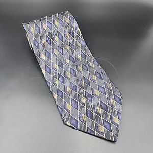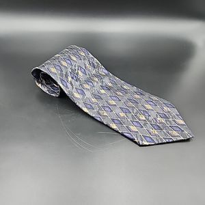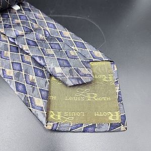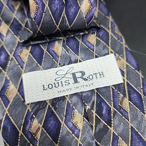 LOUIS ROTH Silk Tie 62" x 4" Geometric Diamond Pattern VTG Italy Gray Purple Tan Crafted from 100% silk, this designer tie features a unique geometric diamond pattern in shades of gray, purple, and tan. Measuring 62" x 4", it is a classic width and has an adjustable feature for your convenience.