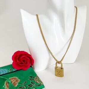 LOUIS VUITTON #341 Lock Only on Cuban Link 21" Chain Necklace 18k Gold Plated
