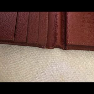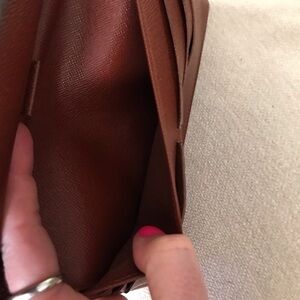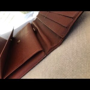 INTERIOR - immaculate w/barely any signs of wear or use. Card slots are in great condition & are not stretched. Can easily hold 3-4 cards, per card slot. Both polished brass snaps close tightly & without any issues. No scratches, or tarnishing & no seen signs of wear.