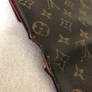 EXTERIOR - Corner wear, cracks, wear at resin glazing, frayed stitch(es), splitting *resin glaze is in great condition except for at the bend.