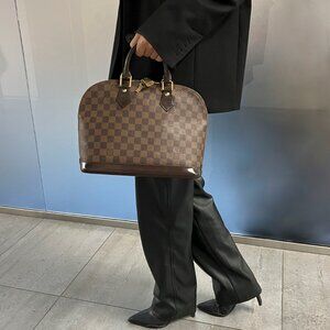 LOUIS VUITTON Authentic Alma PM Damier Ebene Satchel Handbag FL2069 B0282