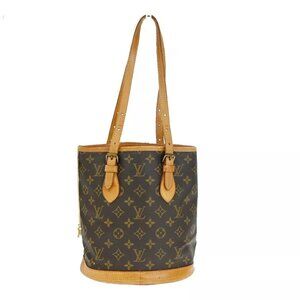 LOUIS VUITTON BUCKET PM Shoulder Tote Bag Monogram Leather Brown