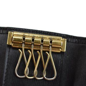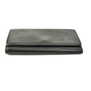 Black, "Epi" leather key case/wallet with four gold, metal key hooks accented by embossed "LV" logo at front