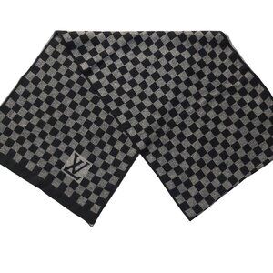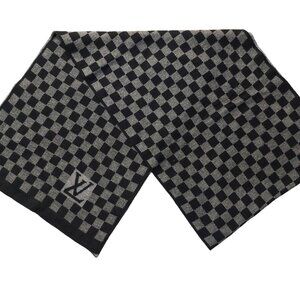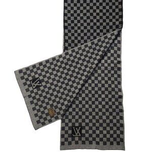 LOUIS VUITTON Black Gray Reversible Cashmere Damier Scarf Pre-Owned