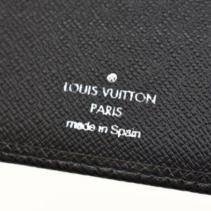 LOUIS VUITTON: Black, "Taiga" Leather "LV" Logo Folding Wallet (xv)