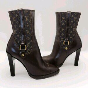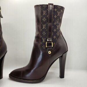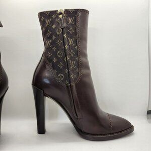 LOUIS VUITTON Brown Leather Mini Lin Jodie Monogram Ankle Boots, Size 35.5 5.5